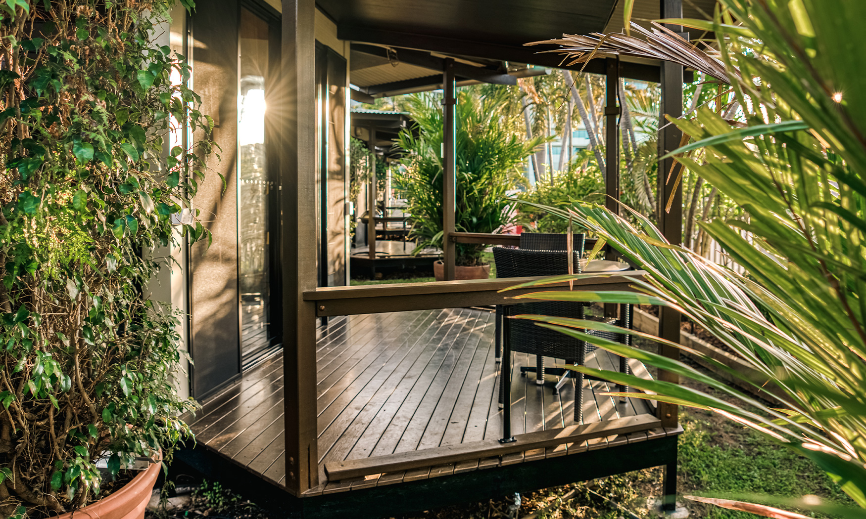 Located on the Esplanade in Darwin city, the Palms City Resort has a combination of hotel rooms and private villas, hidden among the palm trees. It is conveniently located to Parliament House and the Supreme Court, if you are into that sort of thing. It is a short walk from the city proper and very close to the newly opened Darwin RSL. Perhaps most excitingly, it is also a short walk from the Deckchair cinema, where you can sit under the stars and watch a movie with a glass of wine in hand.